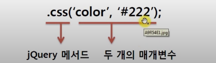 $("선택자").css('color','red');// css 속성 하나를 변경한다.